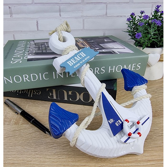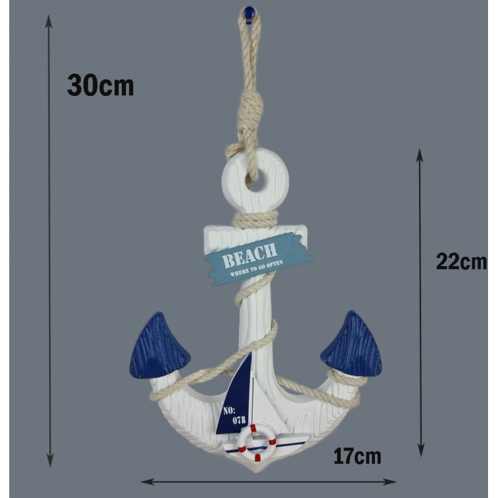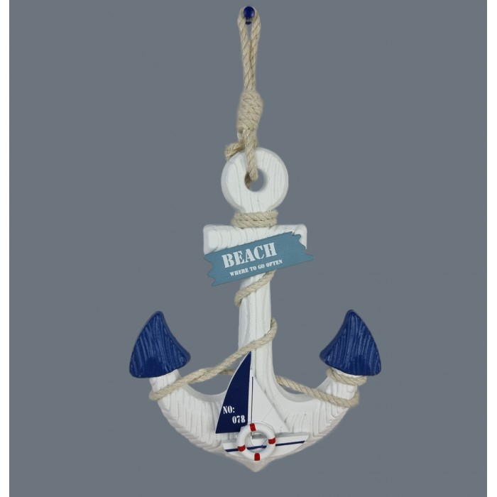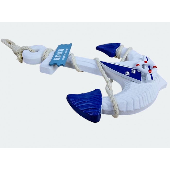 Декоративный якорь изготовленный из дерева и украшенный яхтой и канатом. Компактный якорь отлично подойдет для декора помещений, отлично смотрится с декоративной сеткой.
