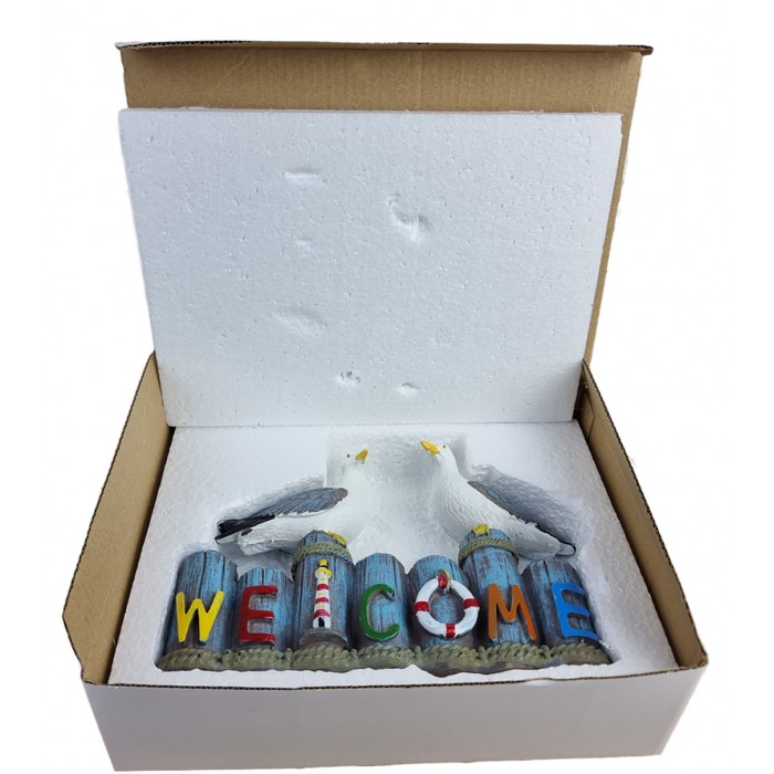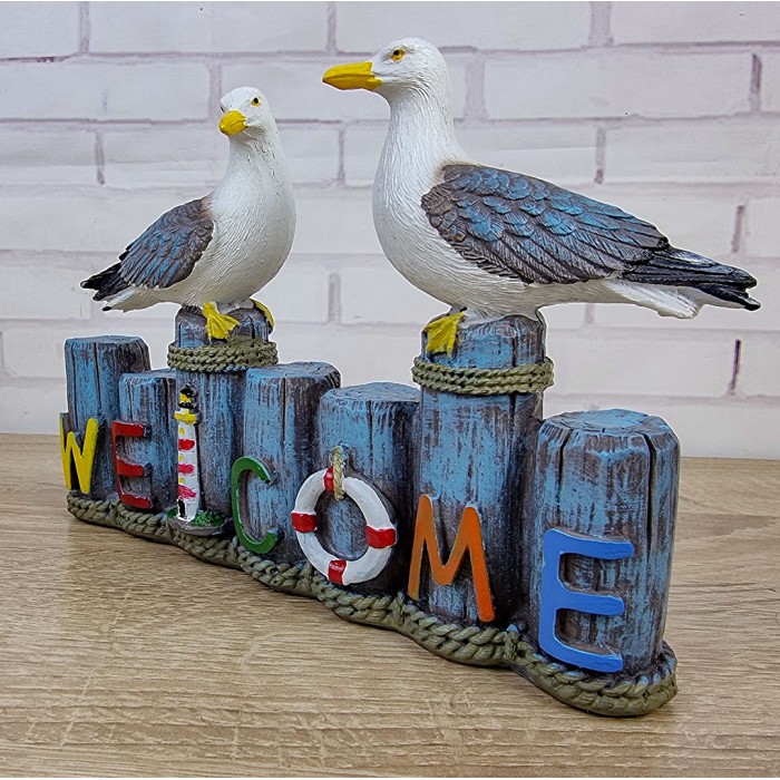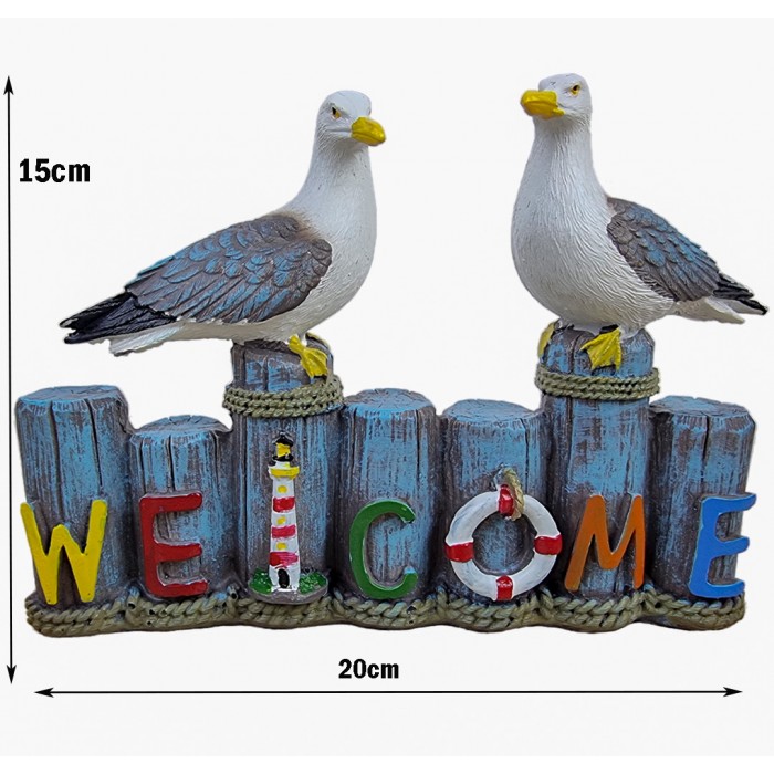 Оригинальная декоративная композиция из двух чаек сидящих на кнехтах, с приветственной надписью Welcome ( добро пожаловать) 20х5х15 см. Материал изготовления-полистоун (иск. камень)