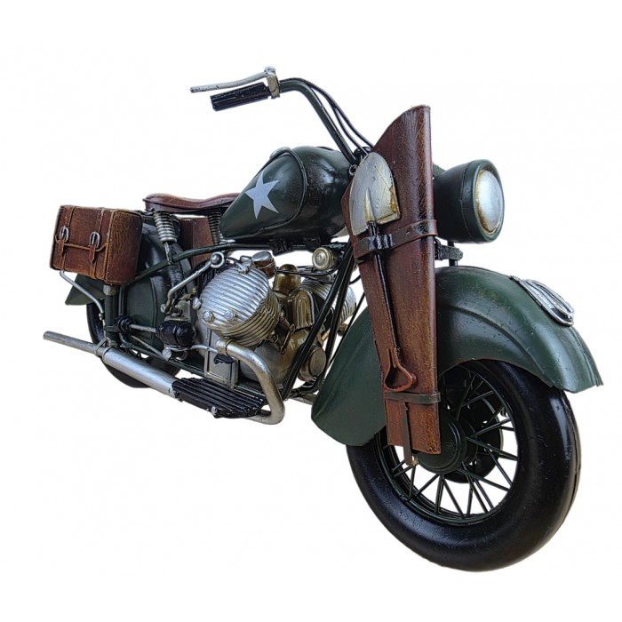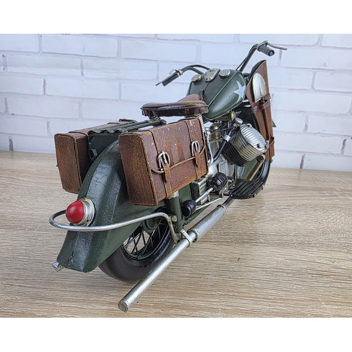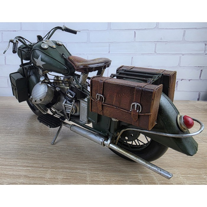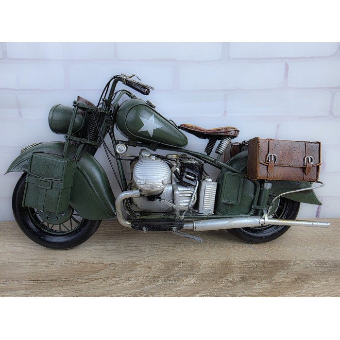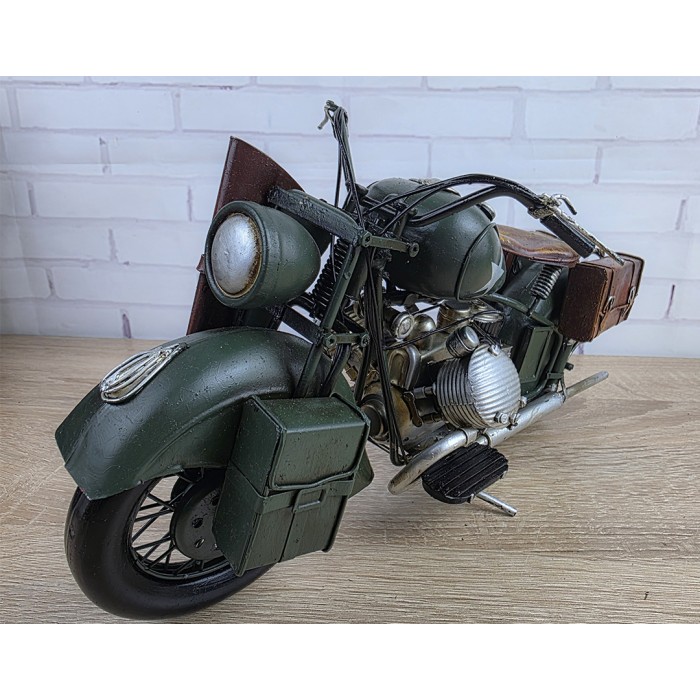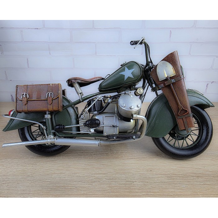 Большая коллекционная ретро модель армейского мотоцикла, металл 34х13х17см с потрясающей детализацией. Длина модели - 34 см. Вес 800гр. Красивый, творческий и оригинальный дизайн, винтажный стиль. Великолепный, креативный и большой подарок другу байкеру. Украшение любого интерьера дома или куба, гаража, офиса. Материал сталь, ручная сборка и раскраска. Масштаб 1:8