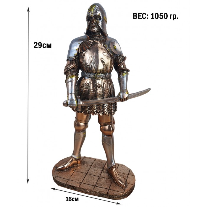 Оригинальная статуэтка Воин средневековья высотой 29см , выполнена качественно с проработкой всех мелких деталей. Понравится практически любому мужчине. Является символом мужества. Отлично смотрится в интерьере гостиной и кабинета. Прекрасно выглядит рядом с камином.
